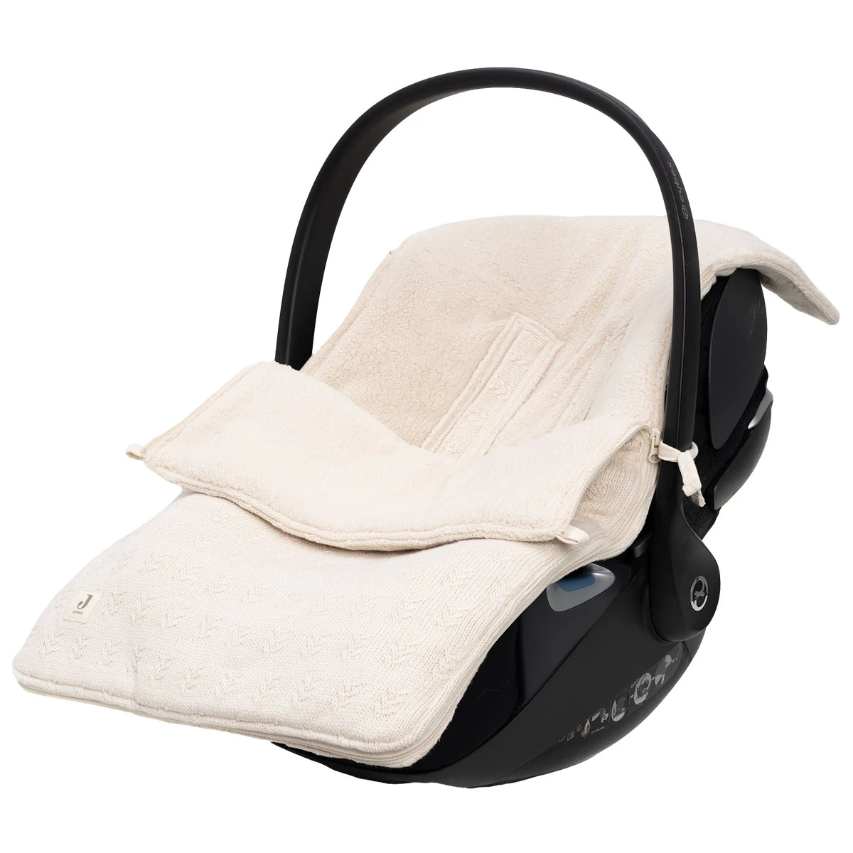 Deze comfortbag komt uit de Grain Knit collectie van Jollein en heeft een gebreid patroontje aan de buitenkant en zachte fleece aan de binnenkant. Daarnaast heeft de voetenzak een capuchon die je kan dicht maken door middel van drukknoopjes. Zo krijgt je kindje het niet koud tijdens de reis.Â