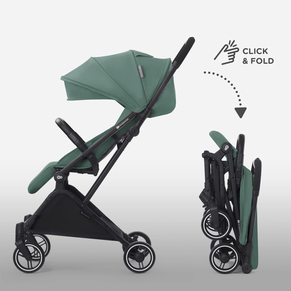 Heb je de wandelwagen even niet nodig, of wil je hem onderweg in de auto meenemen? Met slechts één hand klap je deze wandelwagen in en ook uitklappen gaat weer met één hand. Het dubbele, automatische vergendelingssysteem zorgt ervoor dat de wagen niet onverwacht in- of uitklapt. Doordat de banden allen één richting op vouwen voorkom je dat je vuil op je kleren krijgt.Â