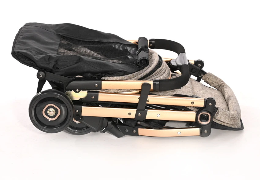 De Myla is ook erg praktisch. Met de knop op de duwstang kun je hem namelijk gemakkelijk inklappen. Je kunt de wagen ingeklapt opbergen in de meegeleverde transsporttas. Handig voor op reis! Is er een vlekje in de bekleding gekomen? Gebruik een doekje met warm water en een milde zeep om deze schoon te maken.Â