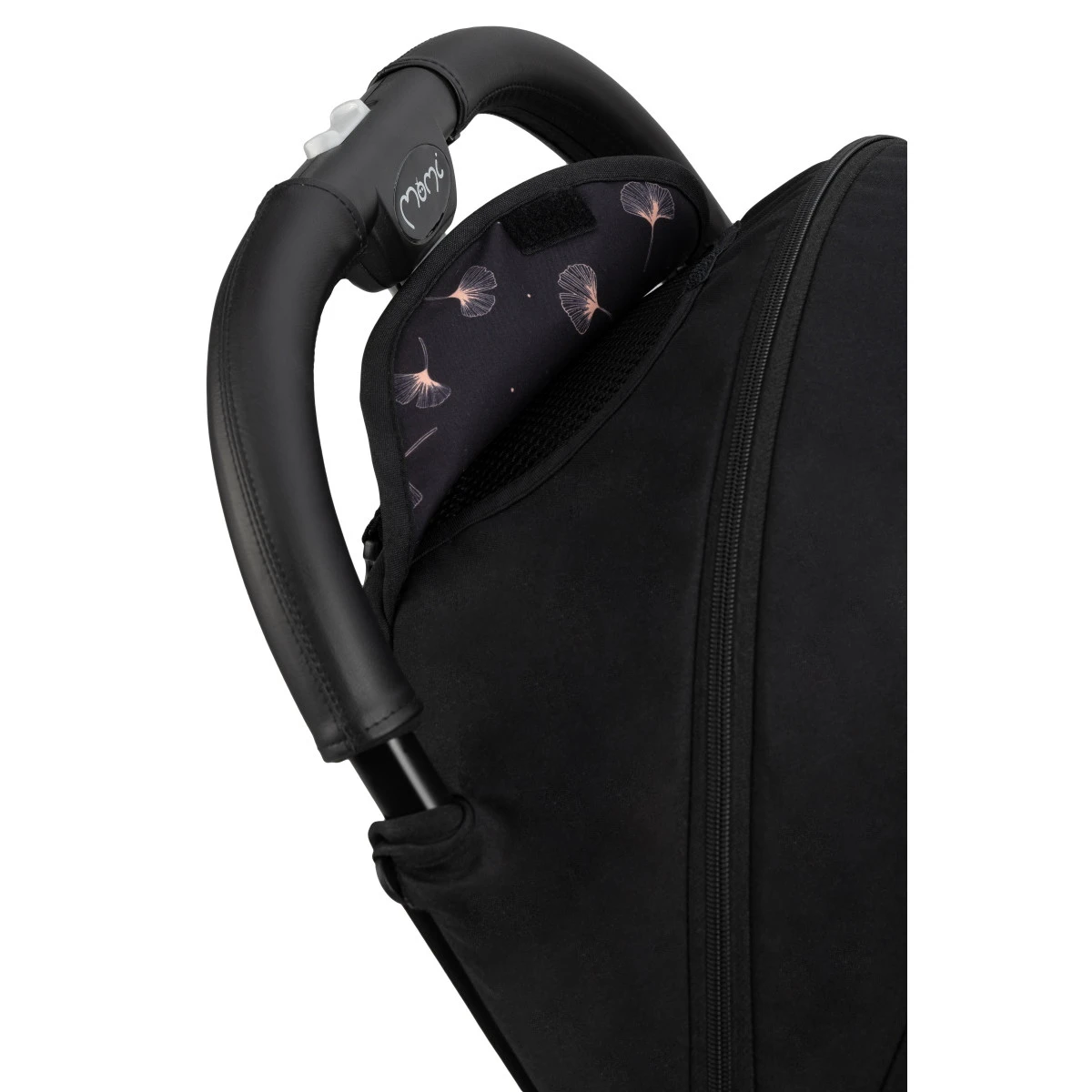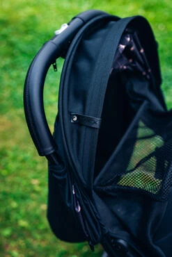 De wagen is voorzien van een ruime zonnekap met mooi design die je kindje beschermd tegen verschillende weersomstandigheden. De kap heeft een kijkluikje, zodat je je kindje altijd kunt zien. Dankzij de 5-punts veiligheidsgordel en de valbeugel zit je kindje altijd veilig in de wagen. De handvaten zijn tevens stijlvol afgewerkt met eco-leer. Ook heeft de wagen een ruime boodschappenmand waar je de nodige spulletjes in op kunt bergen.Â